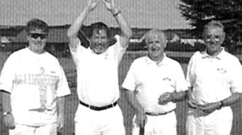 The winning team were awarded medals as a momento of their achievement at the prize giving, an event which was almost overshadowed by Derek Bradley cutting the first sod of Cheltenhams ambitious £55,000 redevelopment of lawns 9, 10 and 11.