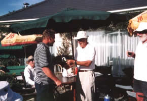 This tournament was designed to encourage novice members of the Club and expand membership. Without its own lawns the Club finds it hard to maintain the membership level necessary to develop a club site utilising the potential grants available. To this end the handicap system was adjusted slightly to favour the entry of newer players. Ten members or guests participated in the knockout tournament with others providing encouragement and learning the intricacies of the game from the sidelines. The players represented a good cross section of the population, as croquet is one game in which men and women, old and young all compete on an even footing. At midday a barbecue was enjoyed whilst members watched an impressive demonstration of croquet skills by Tony Treglown (4.5) and Tony Backhouse (8). |